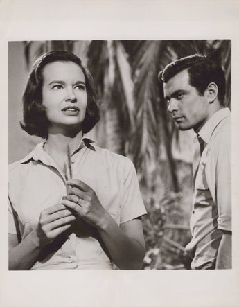Embark on a journey back to classic television with this vintage photo featuring the captivating duo of Guy Stockwell and Linda Lawson in 'Adventures in Paradise' (1959). Preserving a snapshot of the elegance that defined classic TV, this collectible piece captures the chemistry and charm of two iconic figures. Elevate your collection with this timeless portrayal of television history.