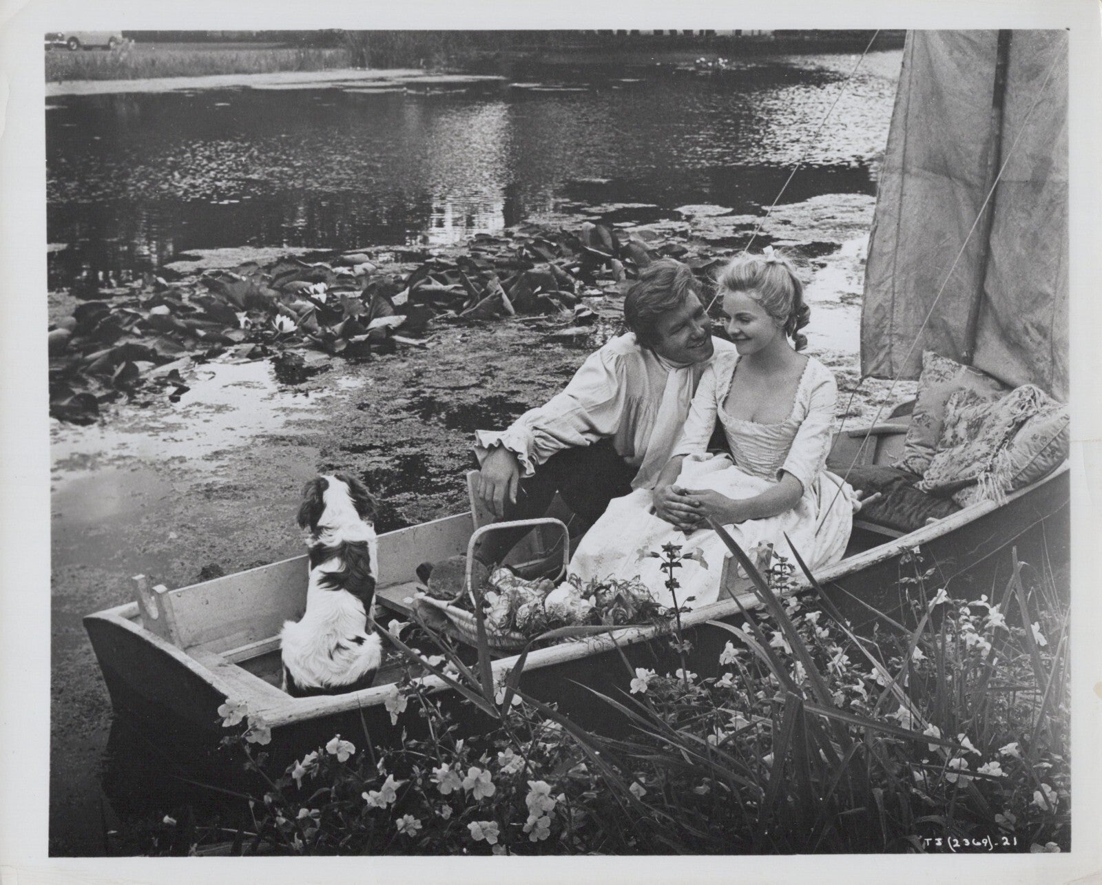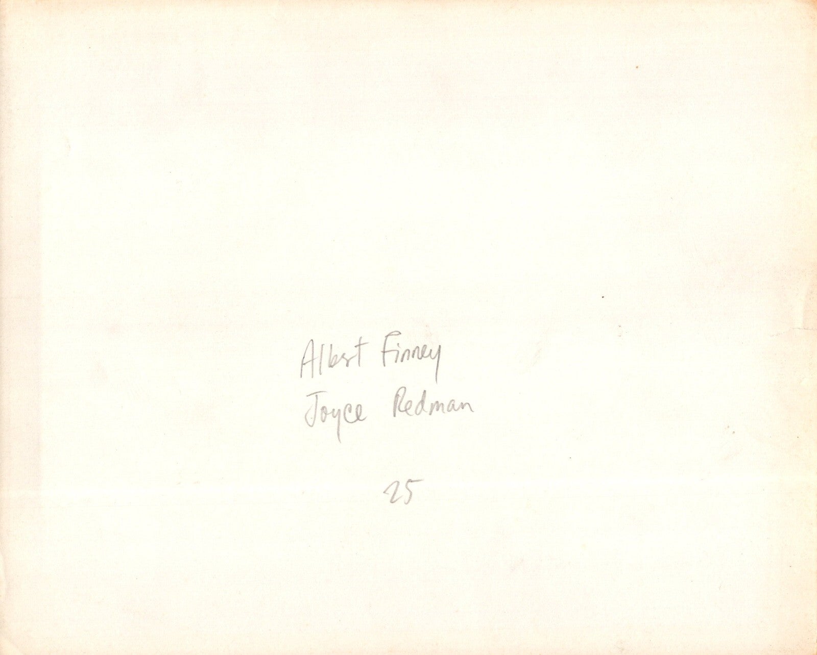 This is an original vintage gelatin-silver print photograph from the 1960s featuring actors Albert Finney and Joyce Redman in a film still. The black and white image measures 8 x 10 inches and is unframed, showcasing the actors in a cinematic setting. This unique piece captures a moment from Hollywood's golden era, making it a desirable collectible for fans of classic movies and celebrity memorabilia.