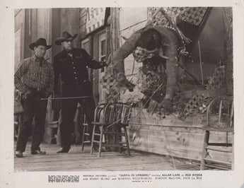 Allan Lane Santa Fe Uprising, vintage western movie still, classic cowboy films, Rocky Lane photograph, 1946 western film collectible, Allan Lane movie photo, Old West Hollywood memorabilia, vintage western hero, Santa Fe Uprising collectible.