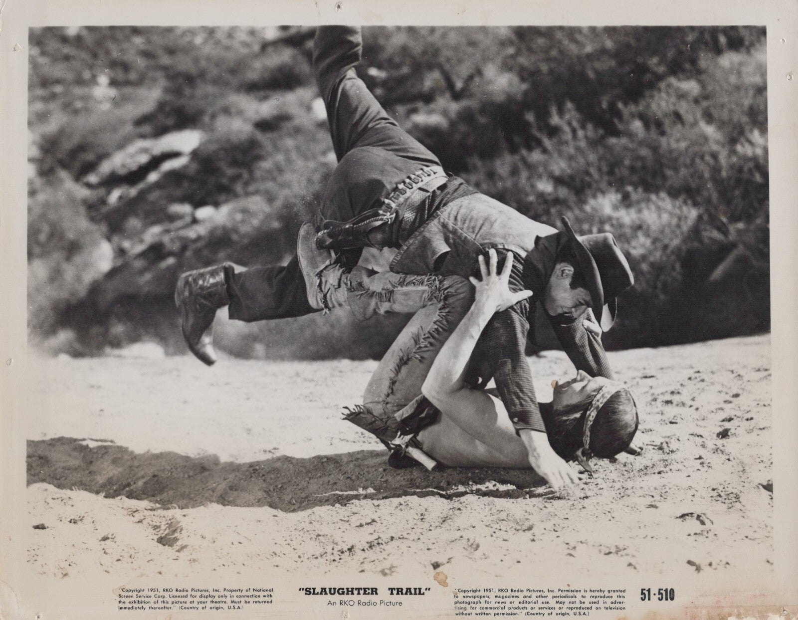 Andy Devine Slaughter Trail 1951, vintage Western film still, Republic Pictures collectible, Andy Devine movie photo, Slaughter Trail 1951 memorabilia, black-and-white Western film image, classic Western cinema collectible, 1950s cowboy movie memorabilia, Andy Devine rare photo, vintage Andy Devine movie still, Slaughter Trail Republic Pictures, Andy Devine Western film roles, collectible Slaughter Trail photo, Western movie photograph, Andy Devine cowboy cinema classic.