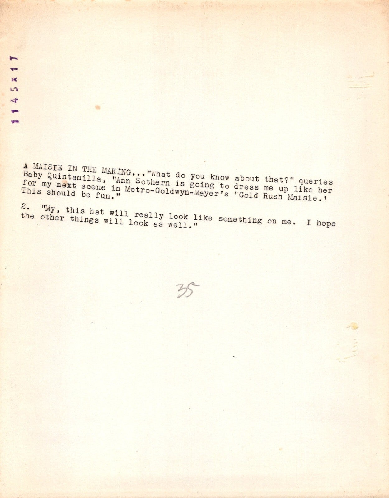 Don’t miss this opportunity to own a piece of cinematic history from the beloved Maisie series!