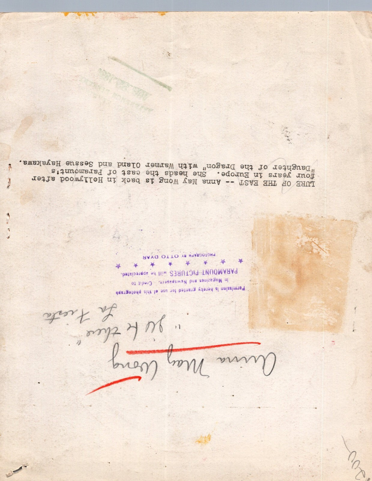 HOLLYWOOD ANNA MAY WONG STUNNING PORTRAIT 1931 OTTO DYAR PARAMOUNT Photo 601