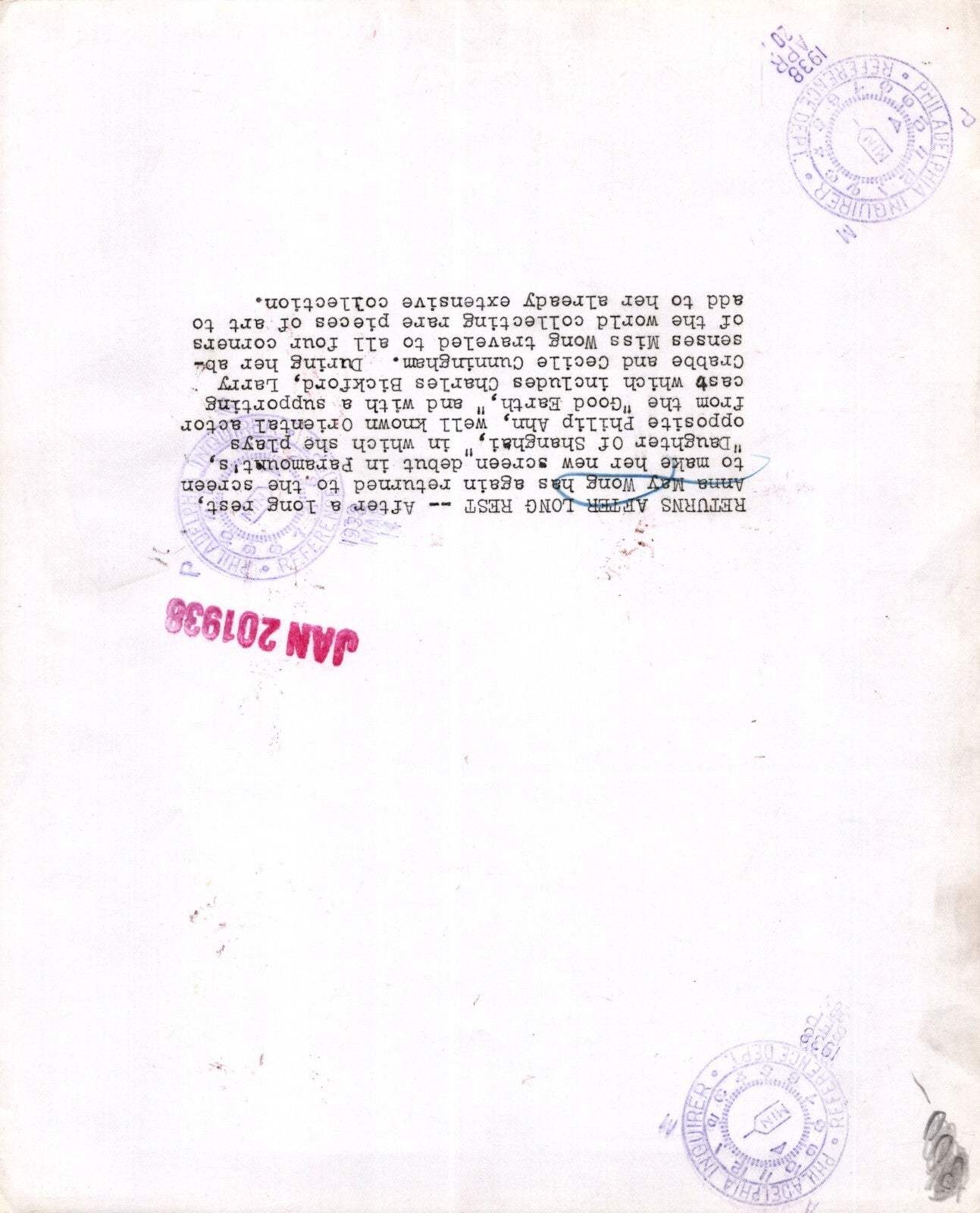 HOLLYWOOD ANNA MAY WONG STUNNING PORTRAIT 1938 ALLURING POSE ORIG Photo 601