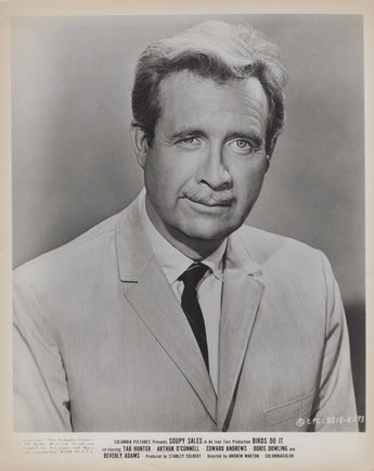 This rare vintage photograph features Arthur O'Connell in his comedic role in Birds Do It (1966), a charming and lighthearted film from the mid-1960s. O'Connell brings his unique style of humor to this film about a man caught in a whirlwind of quirky relationships and misunderstandings. Known for his versatility and comedic timing, O'Connell delivers a memorable performance that adds to the charm of this classic comedy.