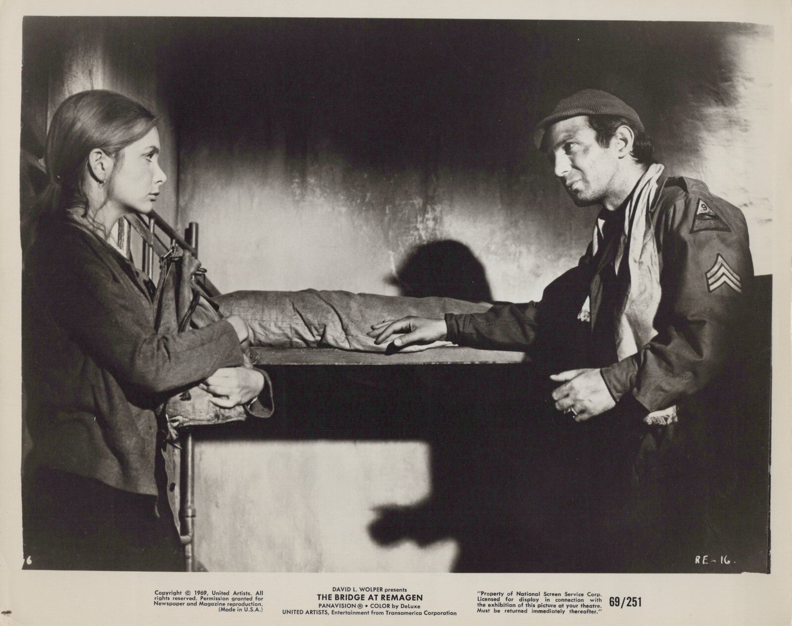 Ben Gazzara, Anna Gaël, The Bridge at Remagen, 1969, vintage war film still, World War II drama, collectible photograph, classic Hollywood, 1960s cinema, war movie memorabilia, rare film photograph.