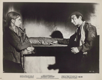 This rare photograph is an essential addition to any collection of war film memorabilia, offering a glimpse into the unforgettable performances and cinematic brilliance of The Bridge at Remagen.