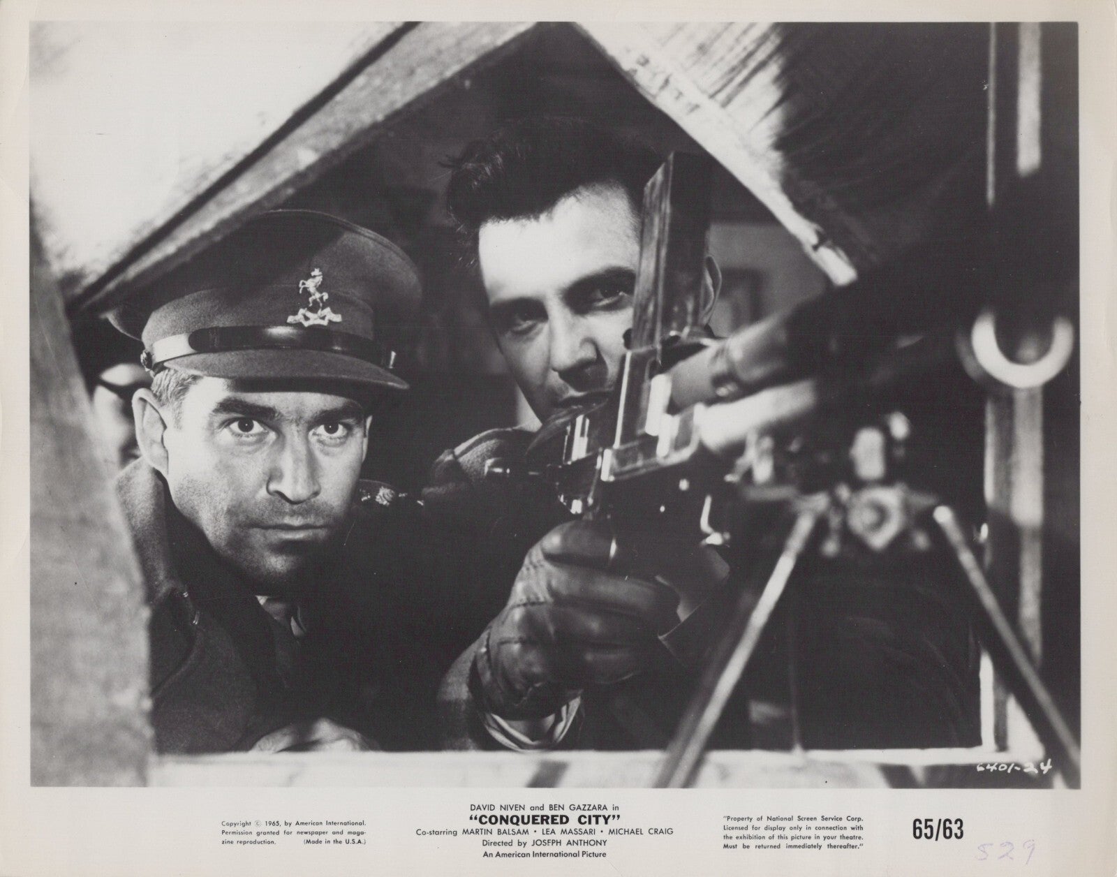 Ben Gazzara, Michael Craig, Conquered City, 1962, vintage war drama, classic Hollywood, rare movie still, World War II film, 1960s cinema, collectible movie photograph, Ben Gazzara memorabilia, Michael Craig collectible.