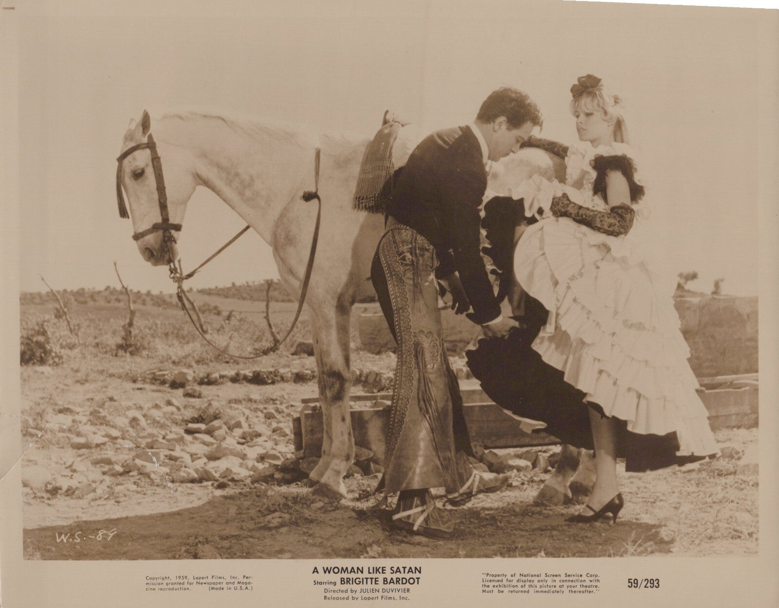 Brigitte Bardot photo, Antonio Vilar movie still, The Female 1958 photograph, La Femme et le Pantin vintage photo, French cinema collectible, 1950s film memorabilia, Brigitte Bardot collectible, Julien Duvivier movie still, vintage international film memorabilia, rare movie photo.