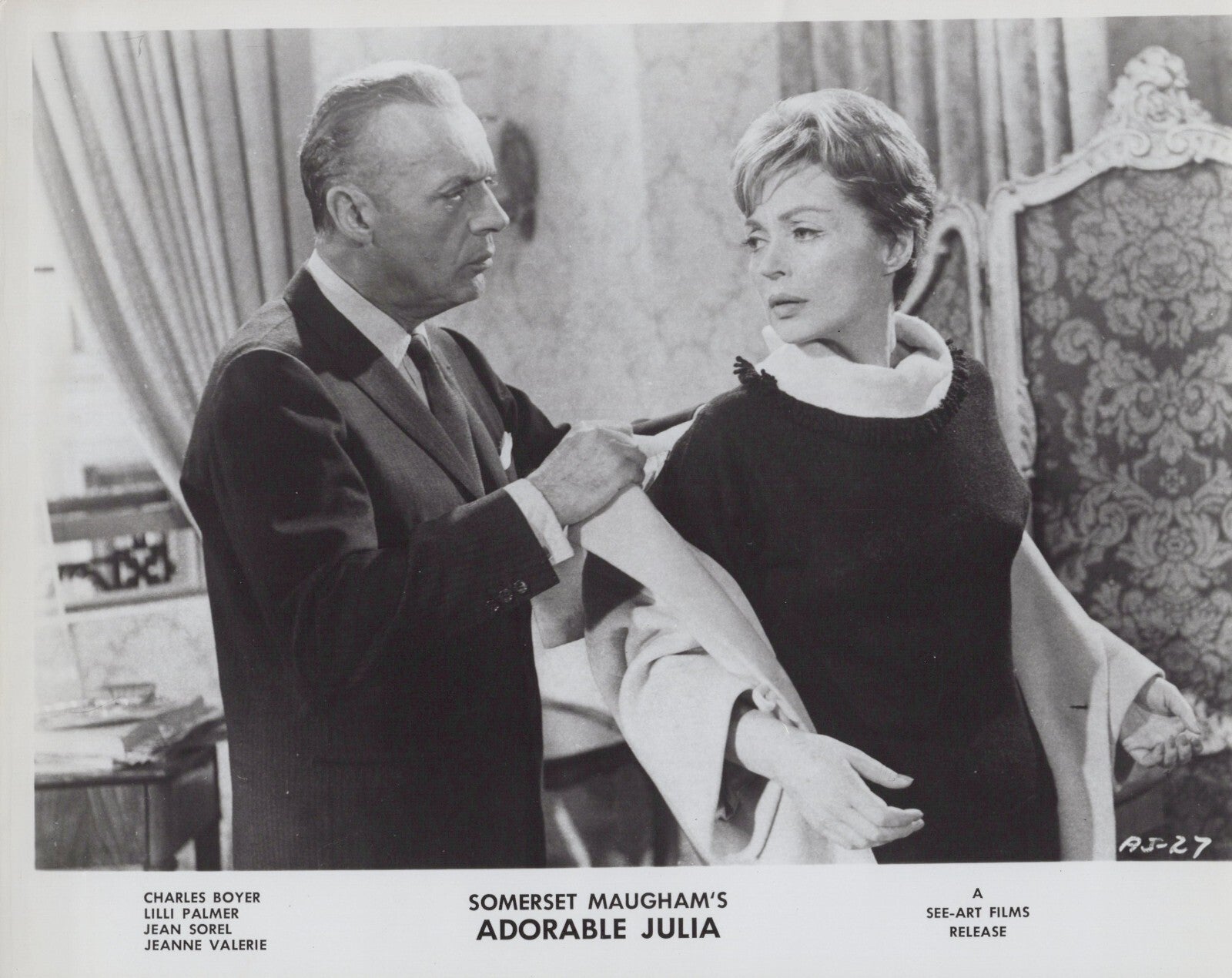 Charles Boyer photograph, Lilli Palmer photo, Adorable Julia 1962 memorabilia, vintage movie photo, classic Hollywood collectible, original studio photo, rare film photography, vintage celebrity photograph.