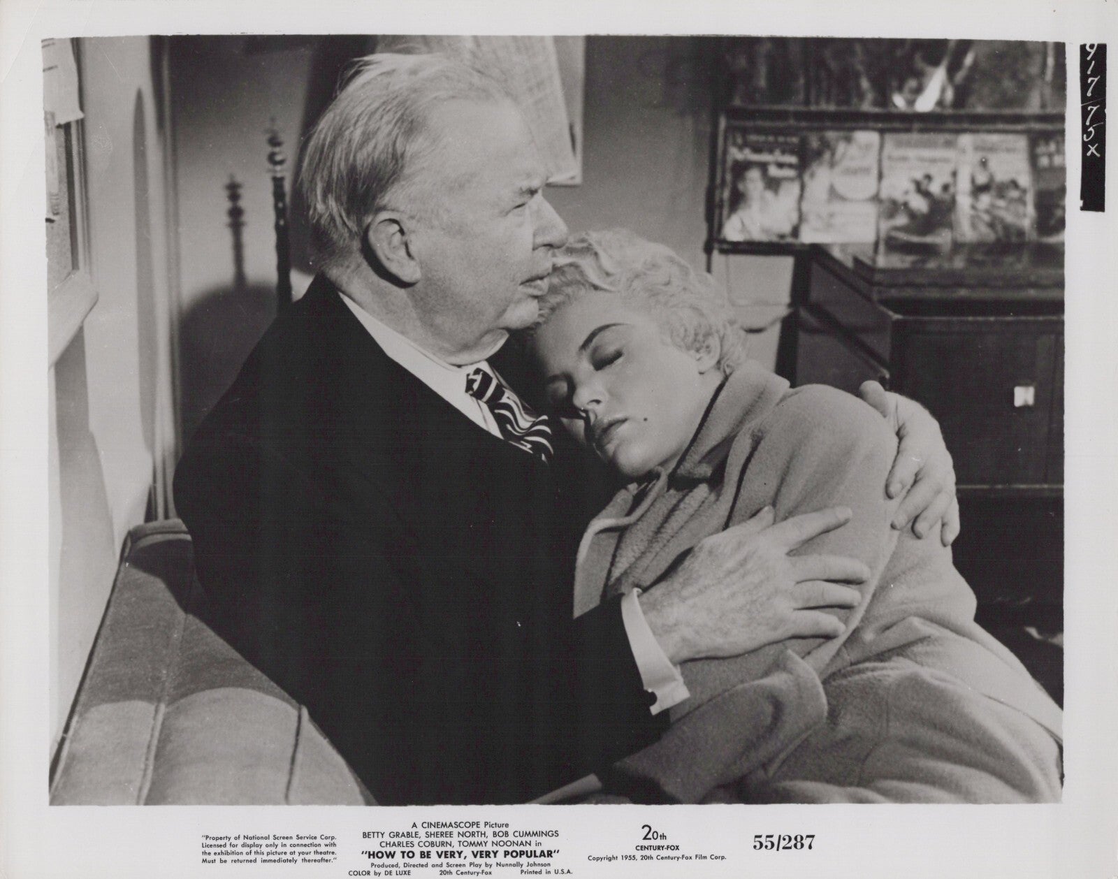 Charles Coburn, Sheree North, How to Be Very Very Popular, 1955, vintage movie photograph, classic Hollywood film, 1950s comedy, Golden Age cinema, Sheree North memorabilia, Charles Coburn collectible, rare movie still.