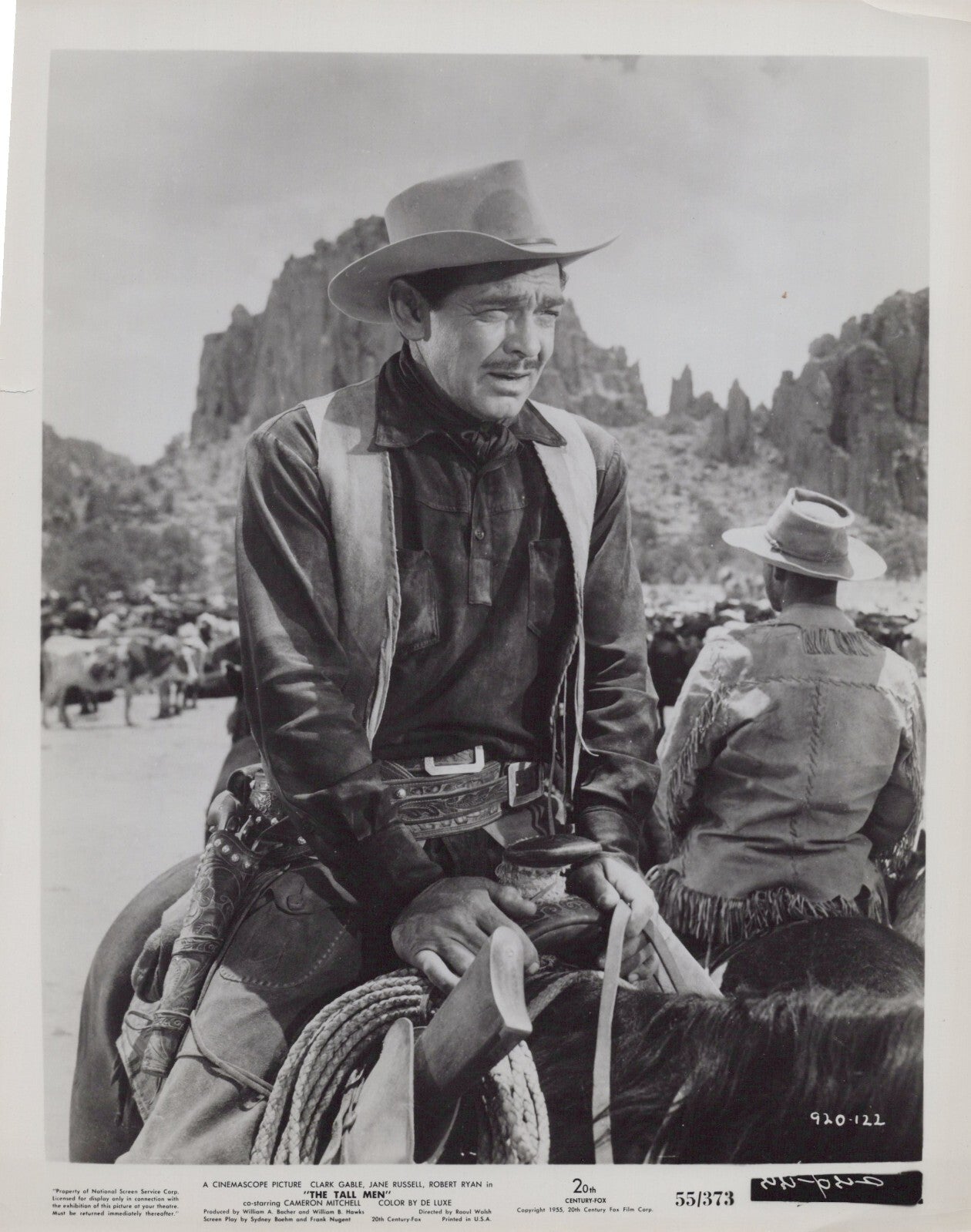 Clark Gable photo, The Tall Men 1955 photograph, vintage Western movie still, 1950s Hollywood collectible, classic Western film memorabilia, Clark Gable collectible, Jane Russell movie photo, Raoul Walsh film, vintage movie memorabilia, Western film photography.