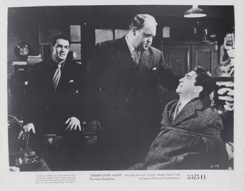 This rare, original vintage photograph features Dermot Walsh in a dramatic scene from the 1953 British crime thriller Undercover Agent. Walsh portrays a determined undercover agent in this suspenseful film, and this image captures the intensity and intrigue of his role. Set in the world of espionage and danger, the photograph offers a glimpse into the high stakes and tension of the story, with Walsh front and center in a compelling moment of the plot.