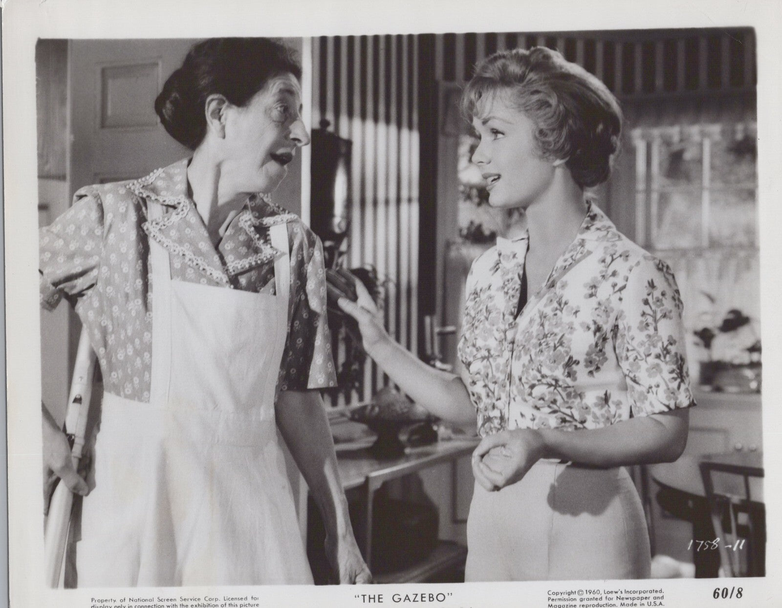 Debbie Reynolds, Doro Merande, The Gazebo 1960, classic Hollywood photograph, vintage movie memorabilia, Debbie Reynolds collectible, Doro Merande rare photo, 1960s dark comedies, George Marshall films, golden age of Hollywood, rare production stills, collectible cinema items, iconic vintage photography, classic film memorabilia, Hollywood movie history.