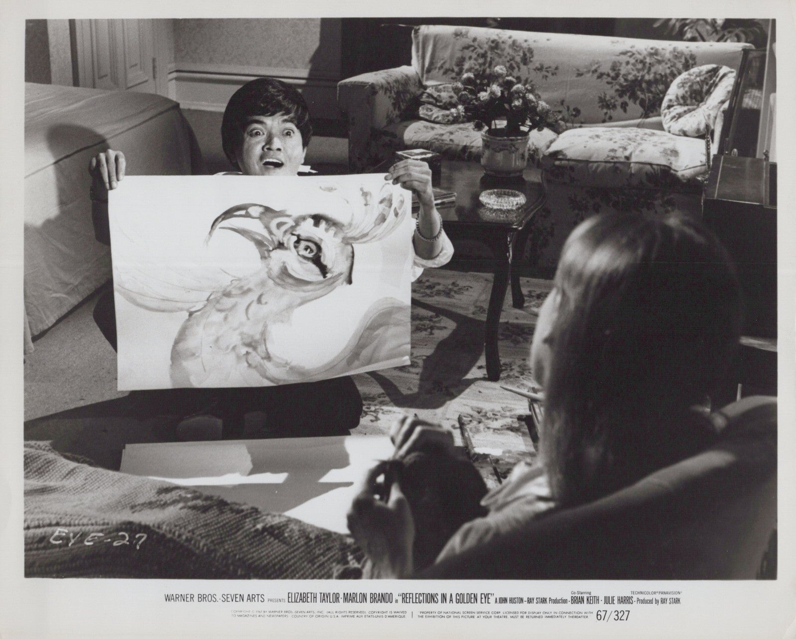 SEO Keywords: Elizabeth Taylor photograph, Reflections in a Golden Eye 1967, vintage Hollywood photo, classic film memorabilia, rare movie collectible, Elizabeth Taylor collectible, 1960s cinema photograph, John Huston film photo, classic movie photography, vintage drama film photo.