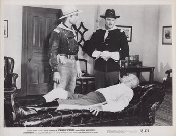 Step into the untamed wilderness of the 1800s with this original vintage movie still featuring George Montgomery as "Lt. Cam Elliott" in the gripping Western Seminole Uprising (1955). Capturing the intense drama and action of a soldier caught in the conflict with the Seminole tribe, Montgomery embodies bravery and resilience in this unforgettable cinematic portrayal.