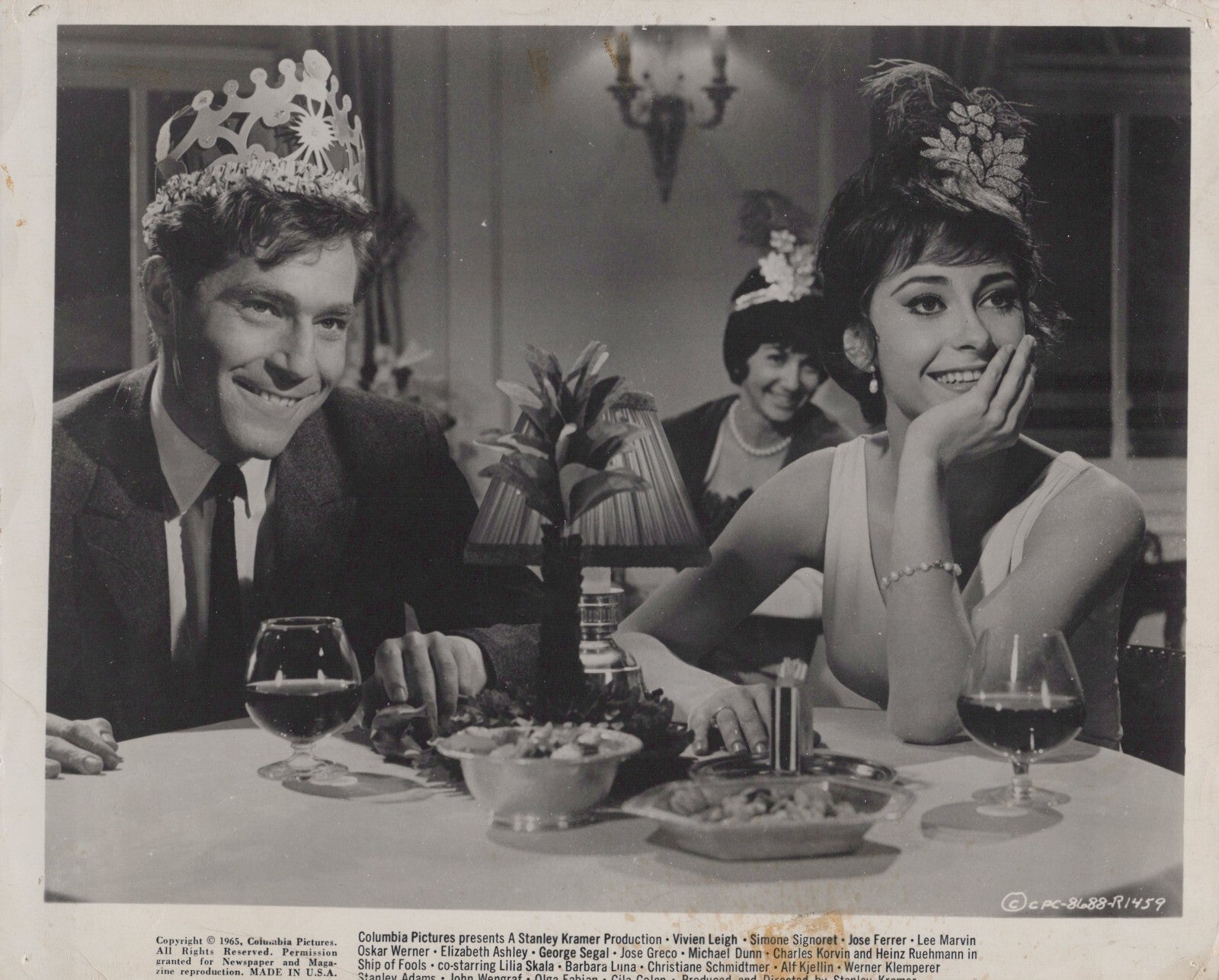 George Segal Ship of Fools photo, Elizabeth Ashley vintage movie still, rare 1965 film memorabilia, classic Hollywood collectible, Stanley Kramer movie memorabilia, vintage drama photo, 1960s cinema treasures, George Segal fans, Elizabeth Ashley collectors, Ship of Fools vintage photograph.