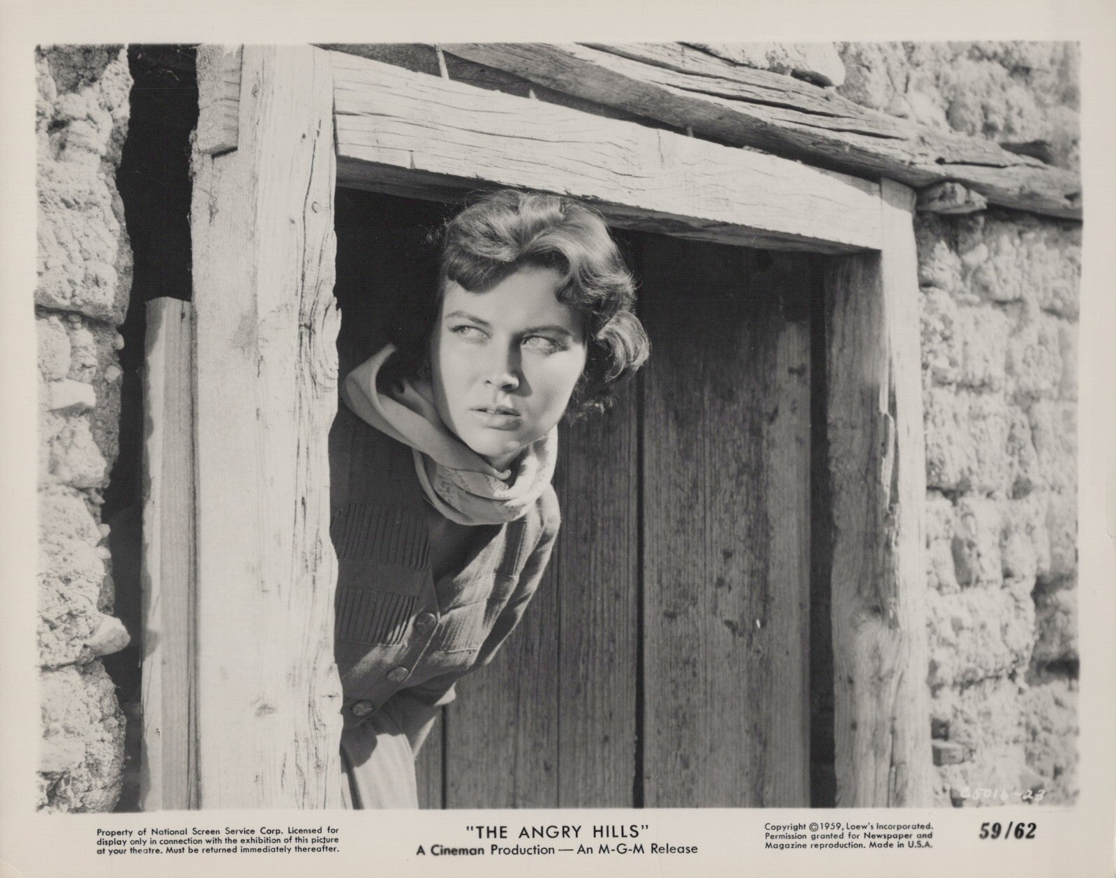 Gia Scala The Angry Hills Photo, 1959 Vintage Movie Still, Robert Mitchum World War II Drama, Classic Hollywood Memorabilia, Gia Scala Film Photography, The Angry Hills Collectors’ Item, 1950s War Movies, Retro Cinema Photos, Gia Scala Promotional Image, WWII Resistance Film Memorabilia, Hollywood Golden Age Collectibles.