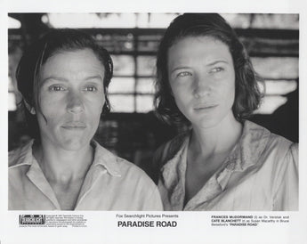 Celebrate cinematic brilliance with this vintage 1997 promotional photograph featuring the powerhouse performances of Glenn Close and Cate Blanchett in the critically acclaimed World War II drama Paradise Road. This rare collectible is a must-have for fans of iconic actresses, historical films, and 1990s cinema memorabilia.