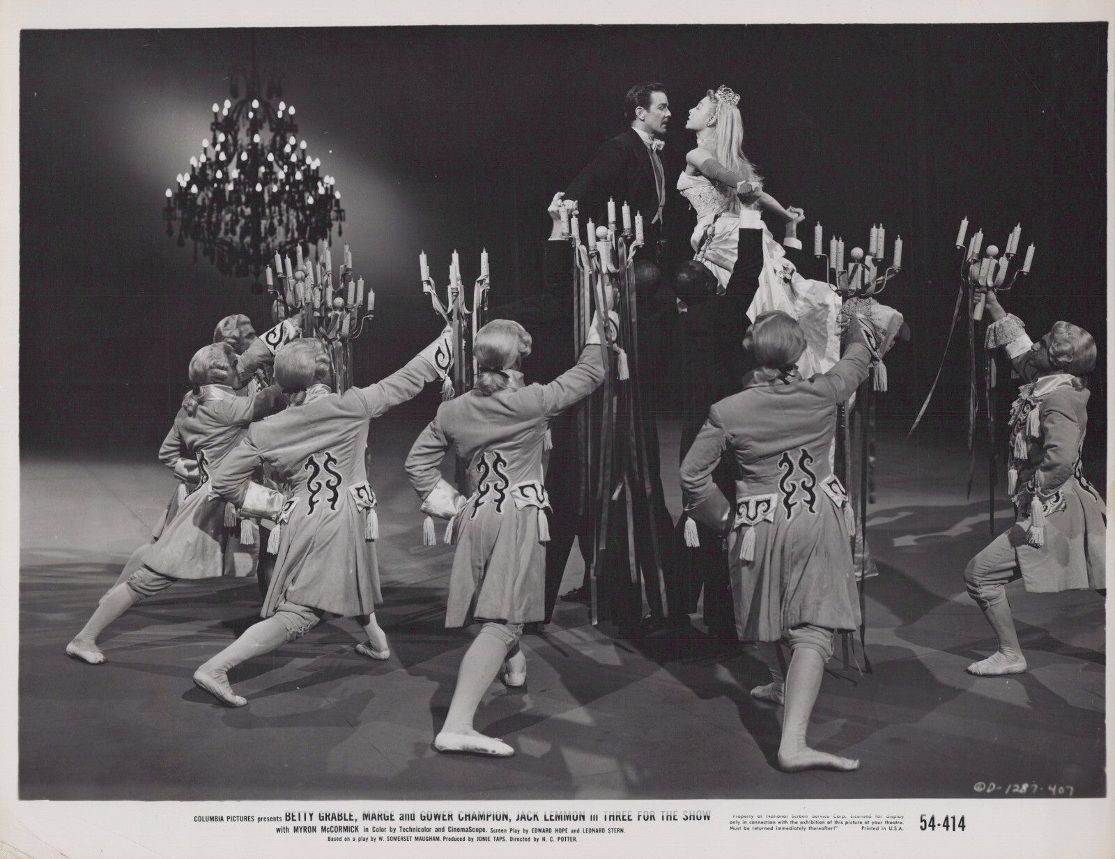 Classic 1950s Musical: A scene from Three for the Show, a beloved gem of the musical comedy genre.