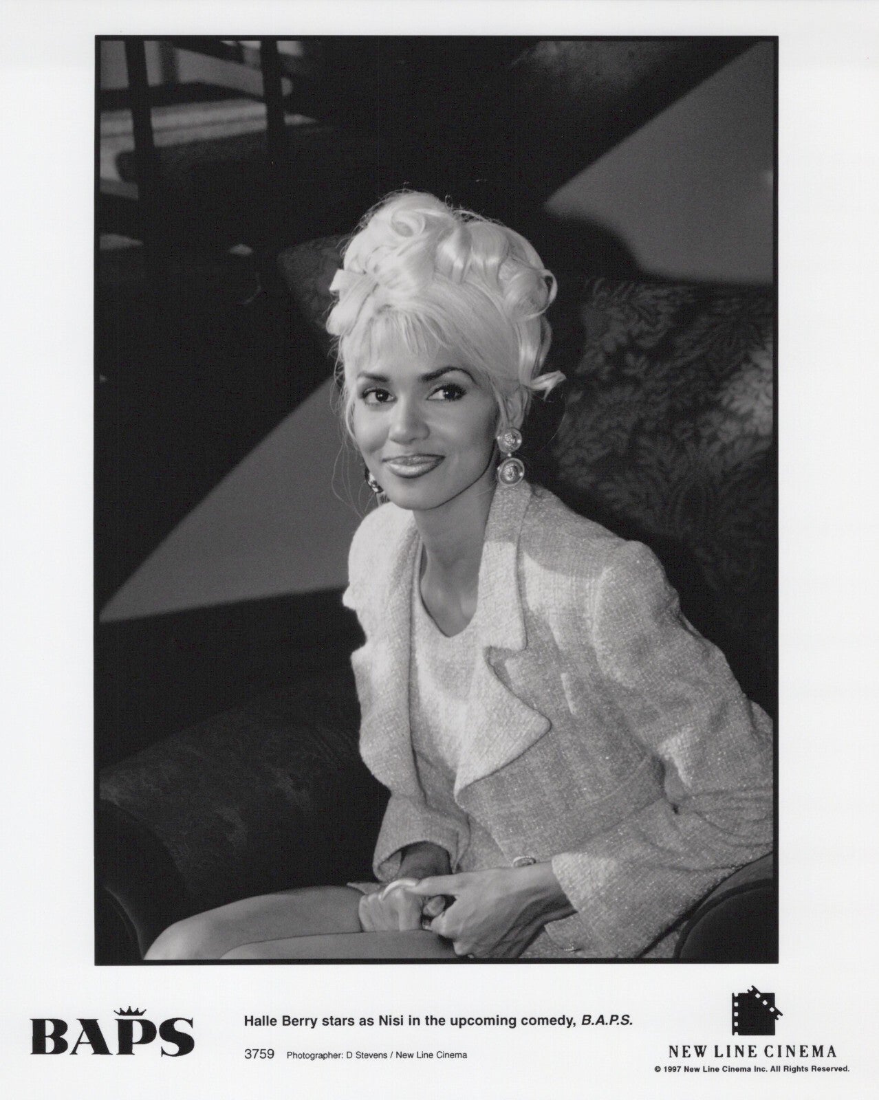 Own a piece of 90s movie history with this rare and authentic movie still featuring Halle Berry in the 1997 cult comedy BAP*S. In this fun and heartwarming film, Berry stars as one of two aspiring hair salon owners who leave Atlanta to make their mark in Beverly Hills. This vintage photograph captures Berry in her iconic role, blending her charm and comedic timing to perfection. A must-have for any Halle Berry fan, 90s comedy enthusiast, or movie memorabilia collector.