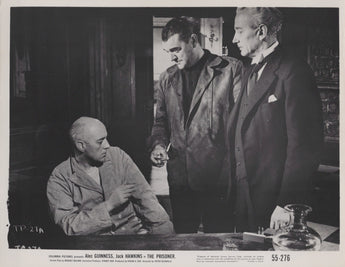 Alec Guinness, Jack Hawkins, The Prisoner 1955, Peter Glenville films, classic British cinema, vintage film photograph, Alec Guinness rare photos, Jack Hawkins collectibles, dramatic movie stills, morality drama films, classic movie memorabilia, 1950s British drama, old Hollywood memorabilia, legendary actors, vintage studio stills, collectible film photos.