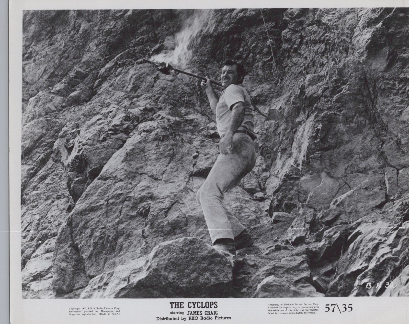 The Cyclops 1957 movie photo, James Craig sci-fi horror collectible, classic 1950s monster films, vintage B-movie memorabilia, Bert I. Gordon movies, rare horror movie stills, radiation mutation monster, Hollywood cult classic, retro sci-fi photography, giant creature films.