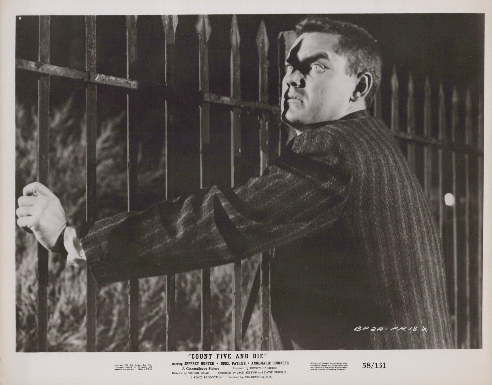 Authentic studio-issued photograph from the 1957 release of Count Five and Die.