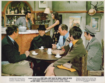 "Jerry Lewis, Bernard Cribbins, Al Mancini, Jacqueline Pearce & Terry-Thomas in Don't Raise the Bridge, Lower the River (1968) - Rare Vintage Film Photograph"