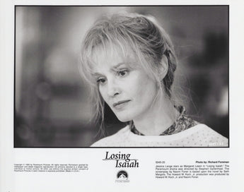 Celebrate Jessica Lange's powerful performance in the emotionally gripping drama Losing Isaiah (1995) with this rare, original promotional photograph. In this critically acclaimed film, Jessica Lange stars as Margaret Lewin, a compassionate social worker and adoptive mother navigating the complexities of love, race, and family dynamics. Sharing the screen with Halle Berry, Lange delivers a deeply moving performance that remains a highlight of her illustrious career.