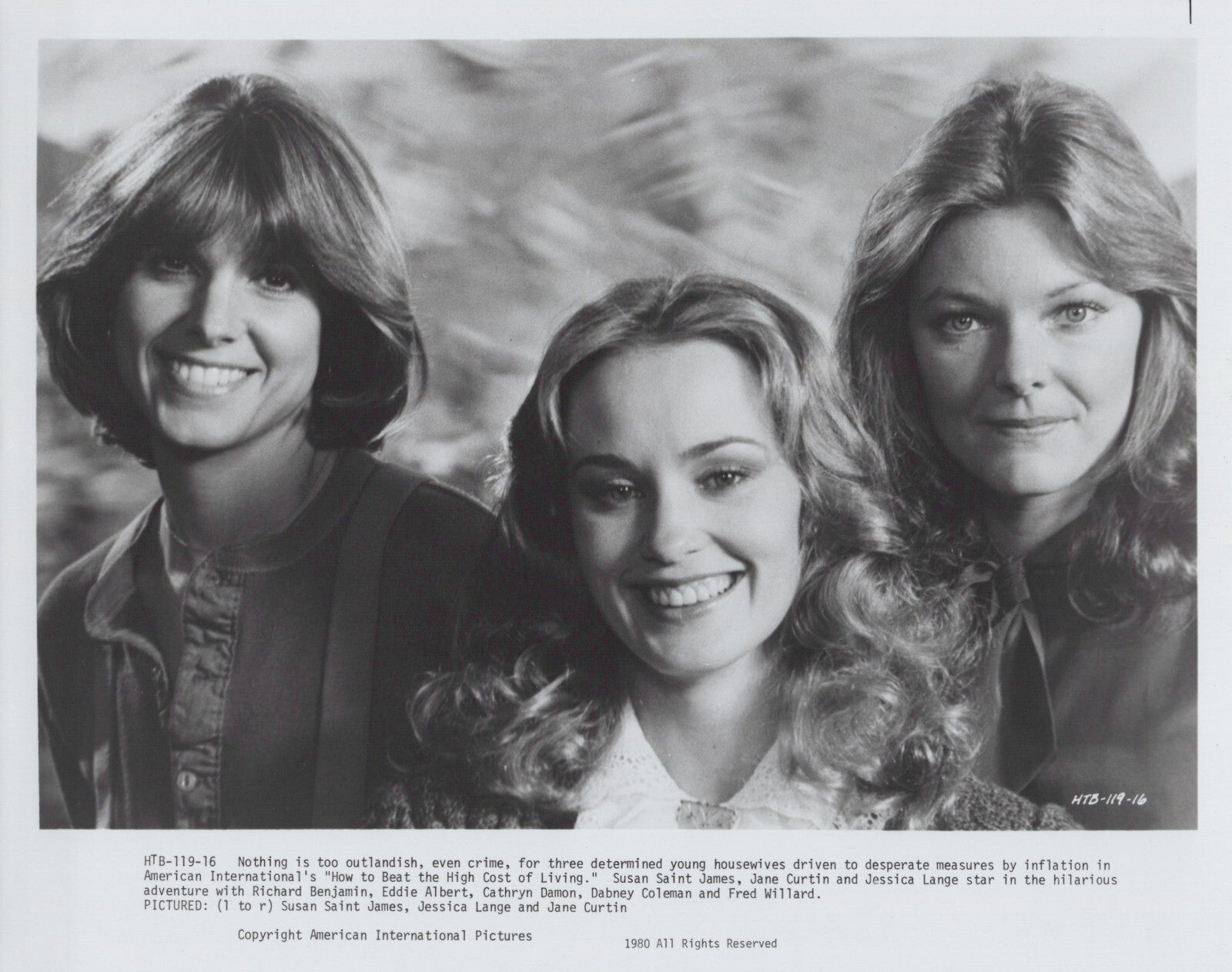 Keywords: Jessica Lange, Jane Curtin, Susan Saint James, How to Beat the High Cost of Living 1980, vintage movie photo, comedy caper film, female heist, 1980s cinema, rare film collectible, Robert Scheerer, financial crisis comedy.