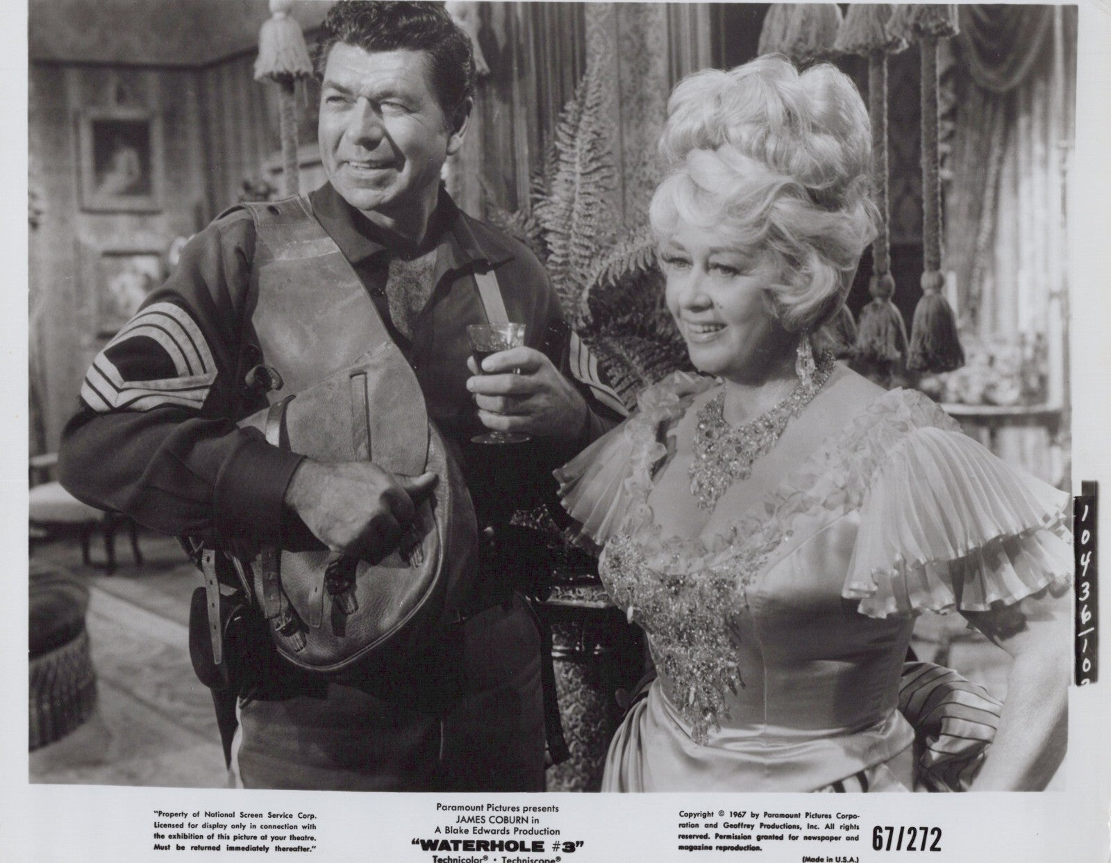 Add a touch of vintage Hollywood charm to your collection with this original 1967 studio photograph featuring Joan Blondell and Claude Akins in the Western comedy Waterhole #3. Known for its sharp wit and lively performances, the film combines classic Western tropes with humor, making it a standout of the genre.