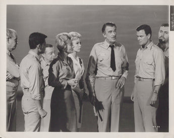 Dive into cinematic history with this rare vintage photograph featuring Joan Fontaine, Peter Lorre, Barbara Eden, Walter Pidgeon, Robert Sterling, and Regis Toomey in Voyage to the Bottom of the Sea (1961). This authentic movie still captures the iconic ensemble cast in a memorable moment from this beloved sci-fi adventure film. A must-have collectible for fans of classic Hollywood and legendary science fiction films.
