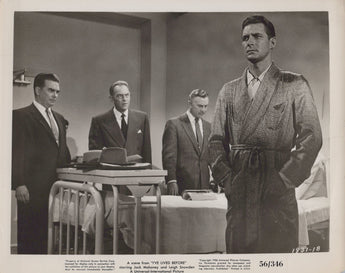 This is a captivating original vintage photograph featuring Jock Mahoney in a compelling scene from the 1956 science fiction drama I've Lived Before. Directed by Richard Bartlett, the film explores themes of reincarnation and past lives, with Mahoney delivering a powerful performance as a pilot who recalls vivid memories of another life. His portrayal of a man torn between the present and a mysterious past showcases his versatility and screen presence.