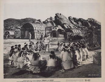 Capture the spirit of the Old West with this original vintage photograph featuring John Hodiak and Rodd Redwing from the 1953 Western classic, Conquest of Cochise. This rare studio-issued still showcases the dramatic tension and historical significance of the film, which explores the complex relationships between settlers, Native Americans, and the U.S. Cavalry in 1850s Arizona.