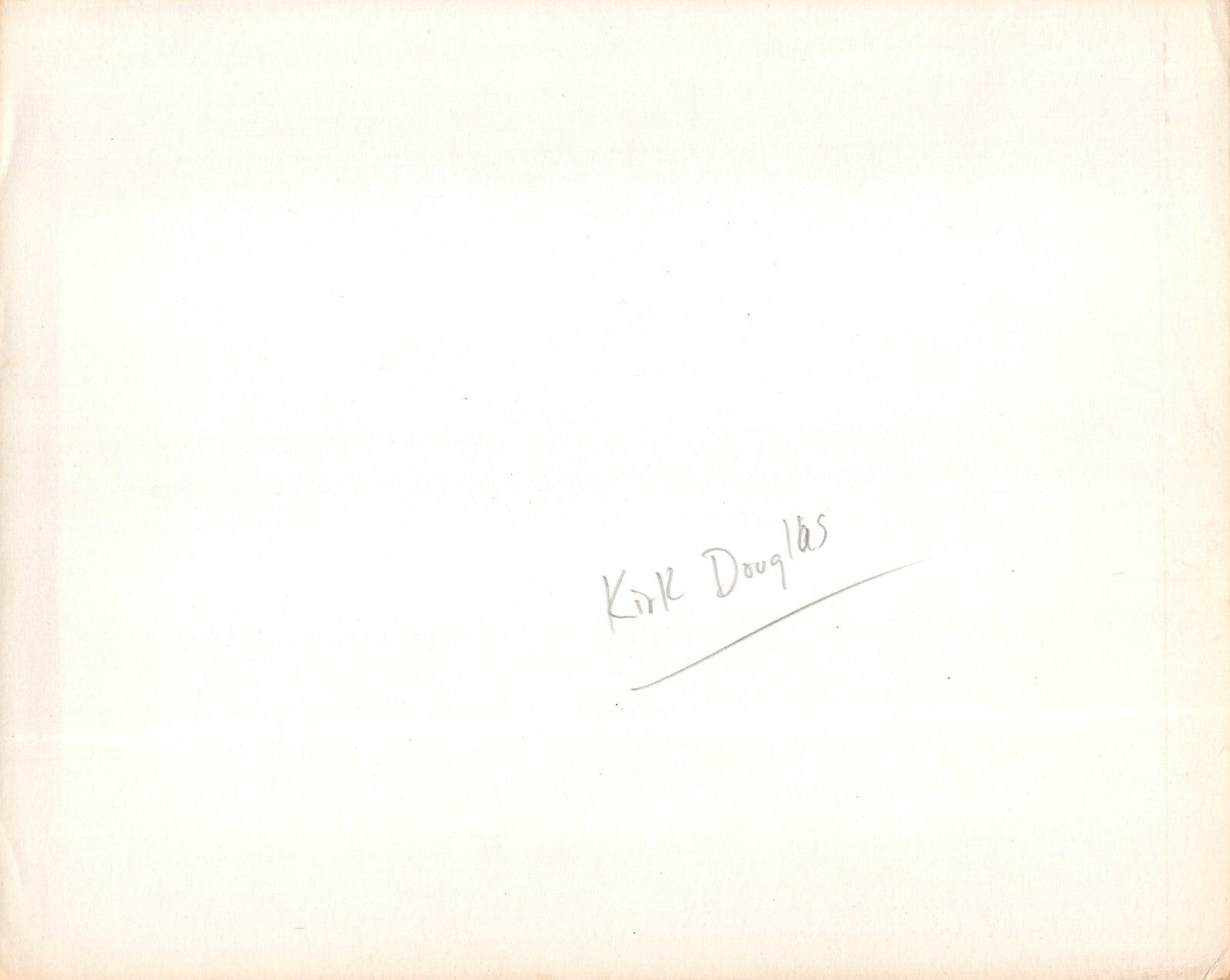 This is an original 8 x 10 inch black and white photograph from the 1960s featuring Hollywood actor Kirk Douglas in a film still. The photograph is a vintage gelatin-silver print from 1940, showcasing a classic image of the renowned actor. It is unframed and printed on glossy paper, making it a unique collectible piece for fans of classic Hollywood movies and celebrities.