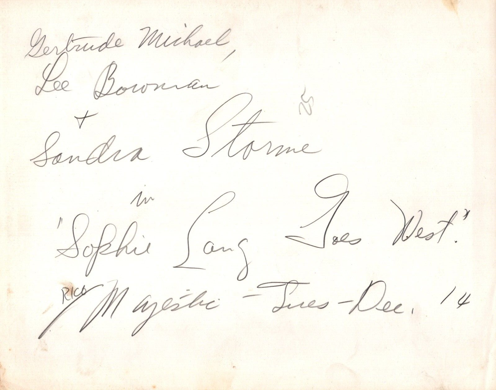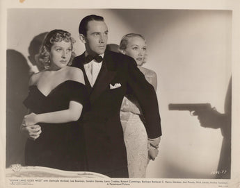 This is an original vintage photograph featuring Lee Bowman, Gertrude Michael, and Sandra Storme in the 1937 mystery-adventure film Sophie Lang Goes West. Directed by Charles Reisner, the film is part of the popular Sophie Lang series, known for its engaging heists and clever plot twists. Gertrude Michael stars as the charming and cunning Sophie Lang, with Lee Bowman and Sandra Storme adding intrigue and glamour to this thrilling cinematic escapade. This authentic photograph is a perfect addition for collectors of classic Hollywood memorabilia and vintage movie stills from the 1930s.