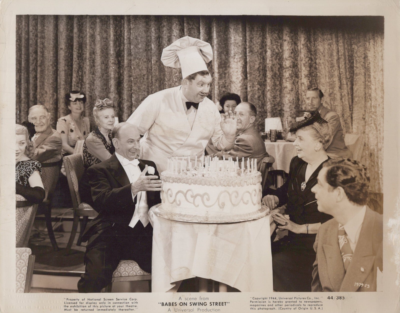 Keywords: Leon Errol June Preisser Babes on Swing Street 1944, vintage musical comedy photo, original press photograph, 1940s Hollywood movie still, classic cinema collectible, swing era film memorabilia, Leon Errol comedy, June Preisser musical film photo.