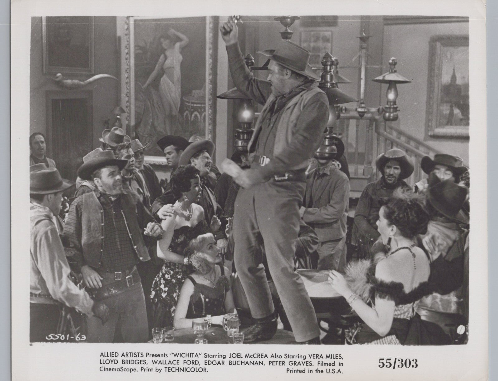 This rare image encapsulates the tension and heroism that define Wichita. Whether you’re a collector of vintage Western memorabilia or a fan of Joel McCrea’s iconic roles, this photograph is a remarkable addition to your collection.