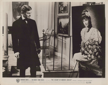 This original movie still captures Louis Jourdan in full character, showcasing his suave and commanding presence as the iconic Count of Monte Cristo. Known for his elegance and charisma, Jourdan brings depth to this legendary role, making this photograph a must-have for collectors of vintage adventure films, Louis Jourdan memorabilia, and fans of classic literary adaptations.