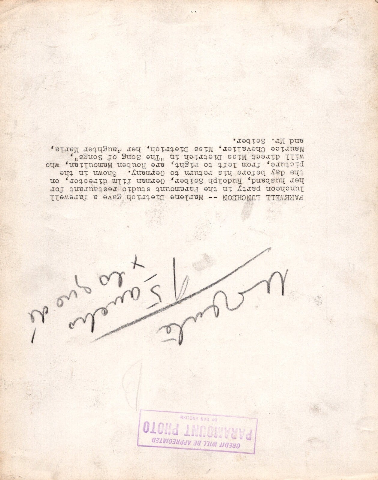HOLLYWOOD MARLENE DIETRICH + RUDOLPH SEIBER + MAMOULIAN by DON EGNLISH PHOTO 59