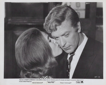 This stunning vintage photograph features Michael Caine and Eleanor Bron in their iconic roles from the 1966 classic Alfie. Directed by Lewis Gilbert, Alfie is a British film that follows the charming and morally complex womanizer Alfie, played by Michael Caine, as he navigates love, relationships, and self-discovery. Eleanor Bron stars as his girlfriend, a strong and independent woman who becomes entangled in his whirlwind life. This rare still captures their dynamic on screen, encapsulating the wit and tension of their characters in this unforgettable film.