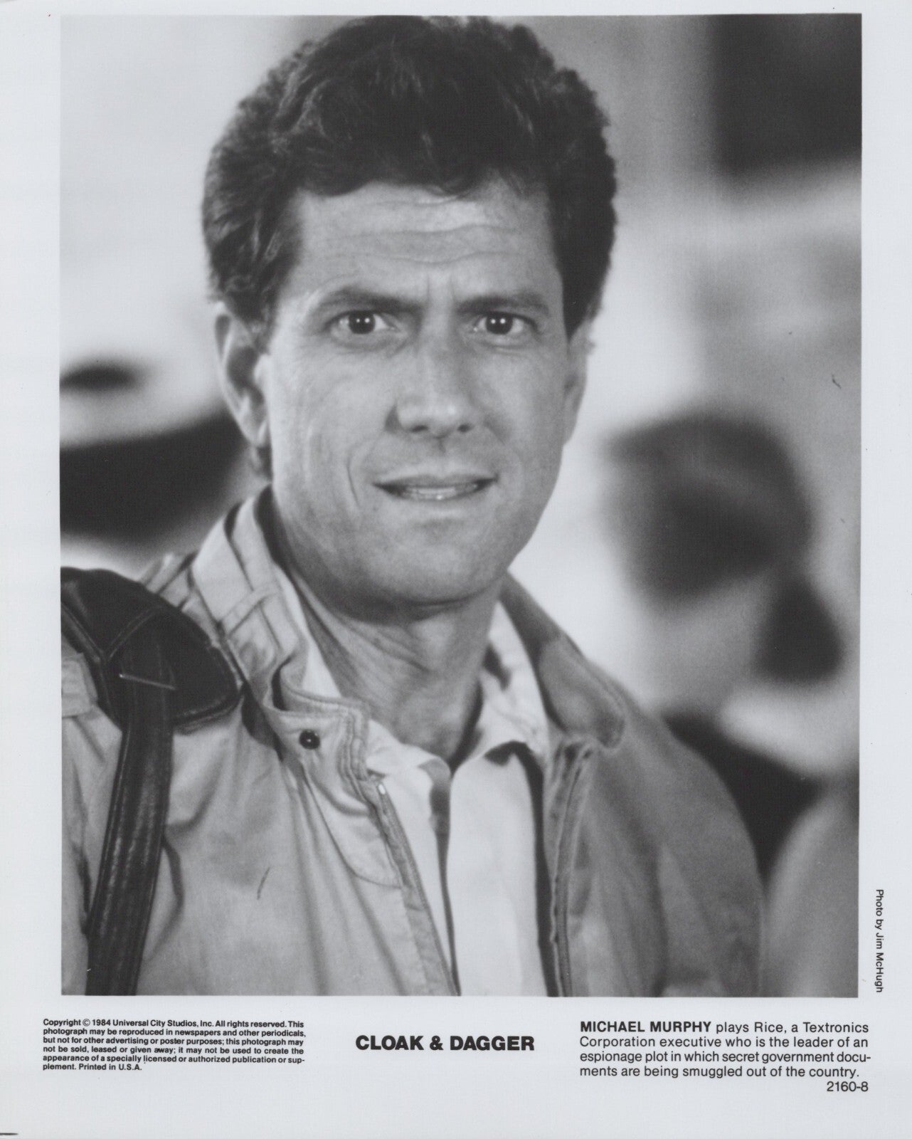 Michael Murphy Cloak & Dagger 1984 photo, 80s spy thriller movie memorabilia, Cloak & Dagger promotional image, rare vintage Hollywood collectible, Michael Murphy film still, adventure movie photography.