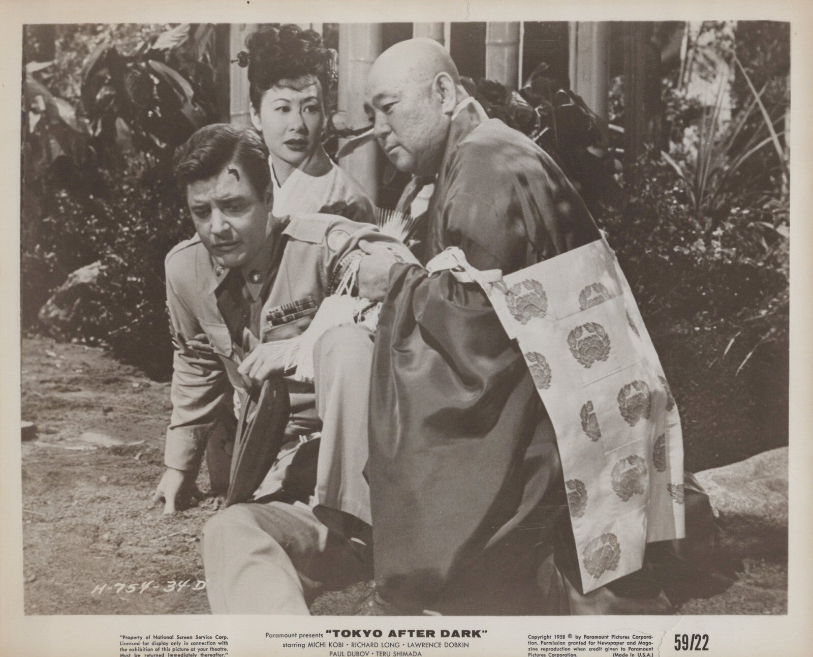 Michi Kobi Richard Long Tokyo After Dark Photo, 1959 Movie Stills, Vintage Hollywood Photos, 1950s Crime Thriller Memorabilia, Rare Michi Kobi Photos, Richard Long Film Stills, Japanese Noir Movie Stills, Vintage Movie Memorabilia, Golden Age Hollywood Photography.