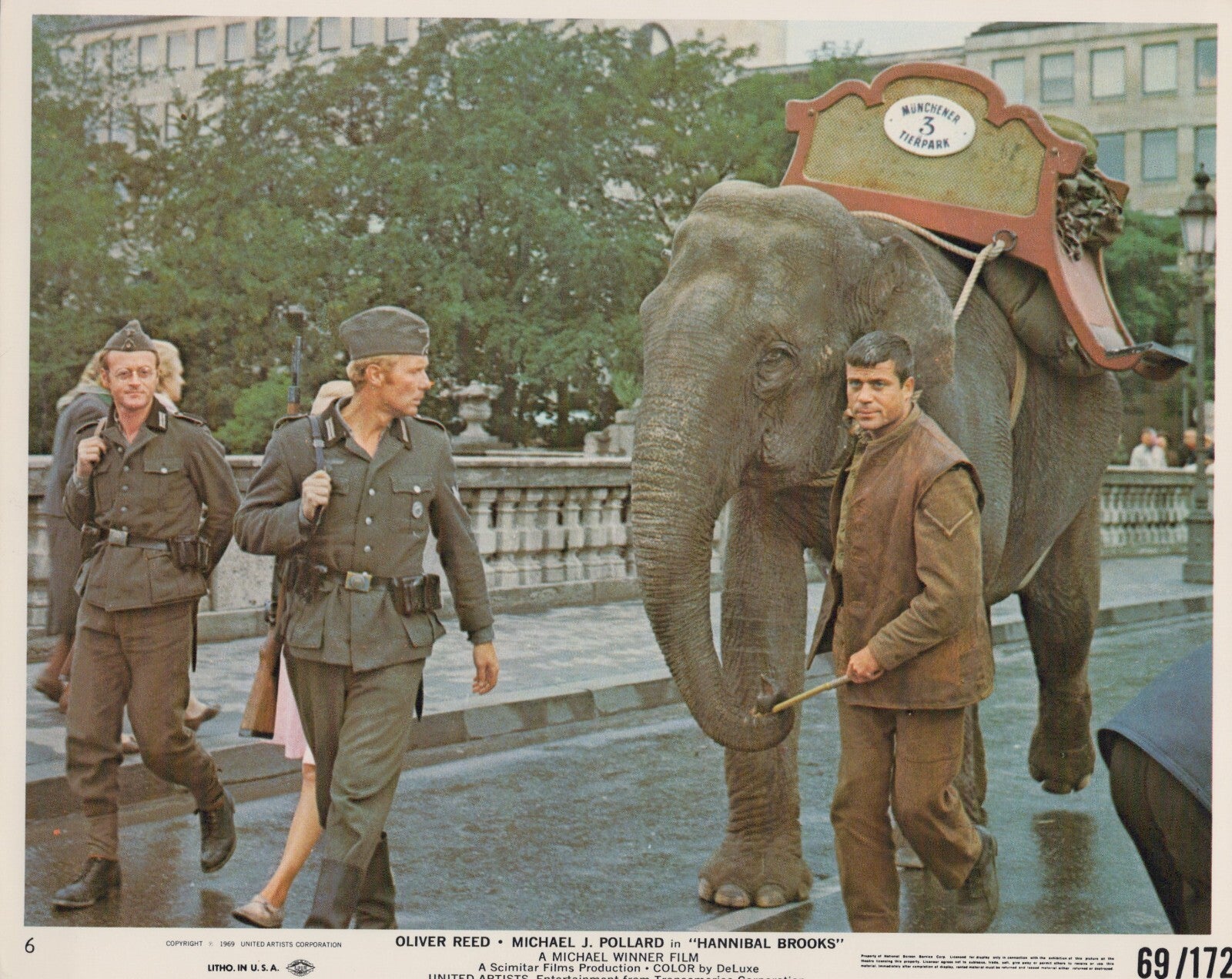 Oliver Reed photo, Hannibal Brooks 1969 photograph, Peter Carsten film still, Helmuth Lohner collectible, classic war comedy memorabilia, vintage Hollywood photo, Michael Winner movie collectible, 1960s cinema memorabilia, original studio photograph.