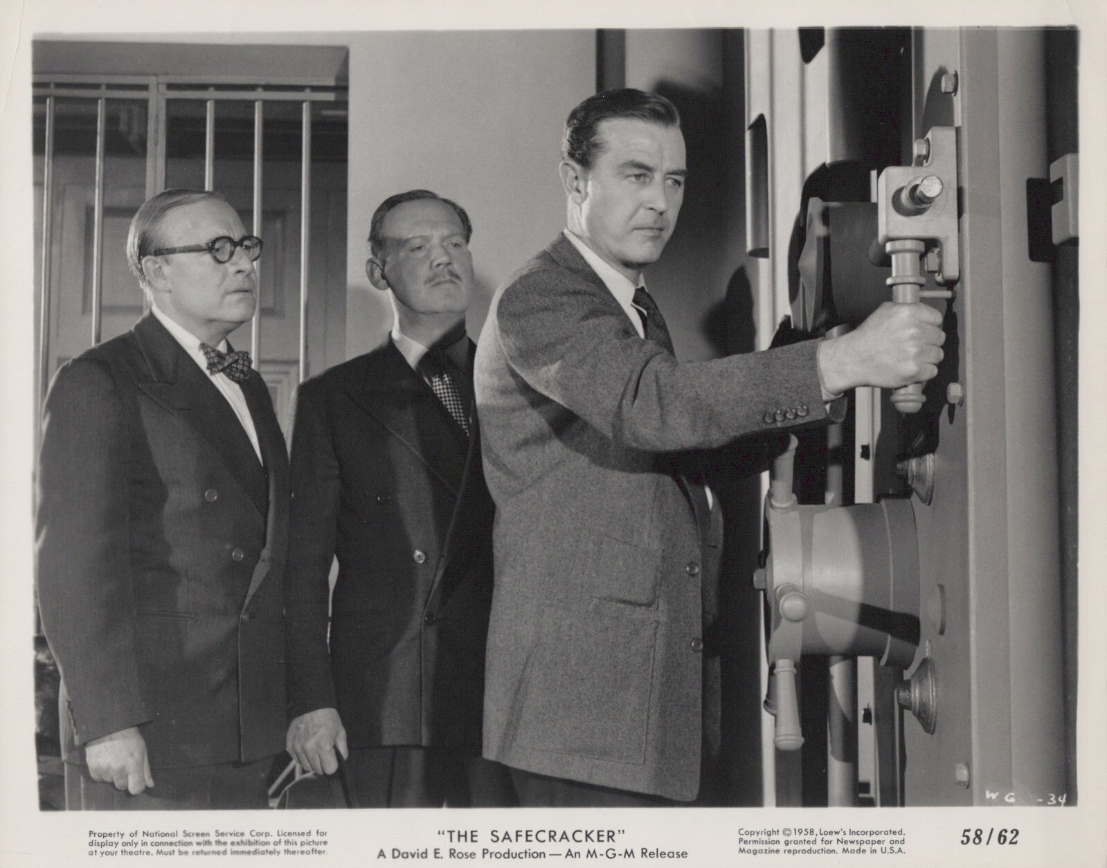 Keywords: Ray Milland photo, The Safecracker 1958 memorabilia, British crime drama, classic heist film photo, Charles Lloyd Pack and Cyril Raymond collectible, vintage movie still, 1950s thriller memorabilia.