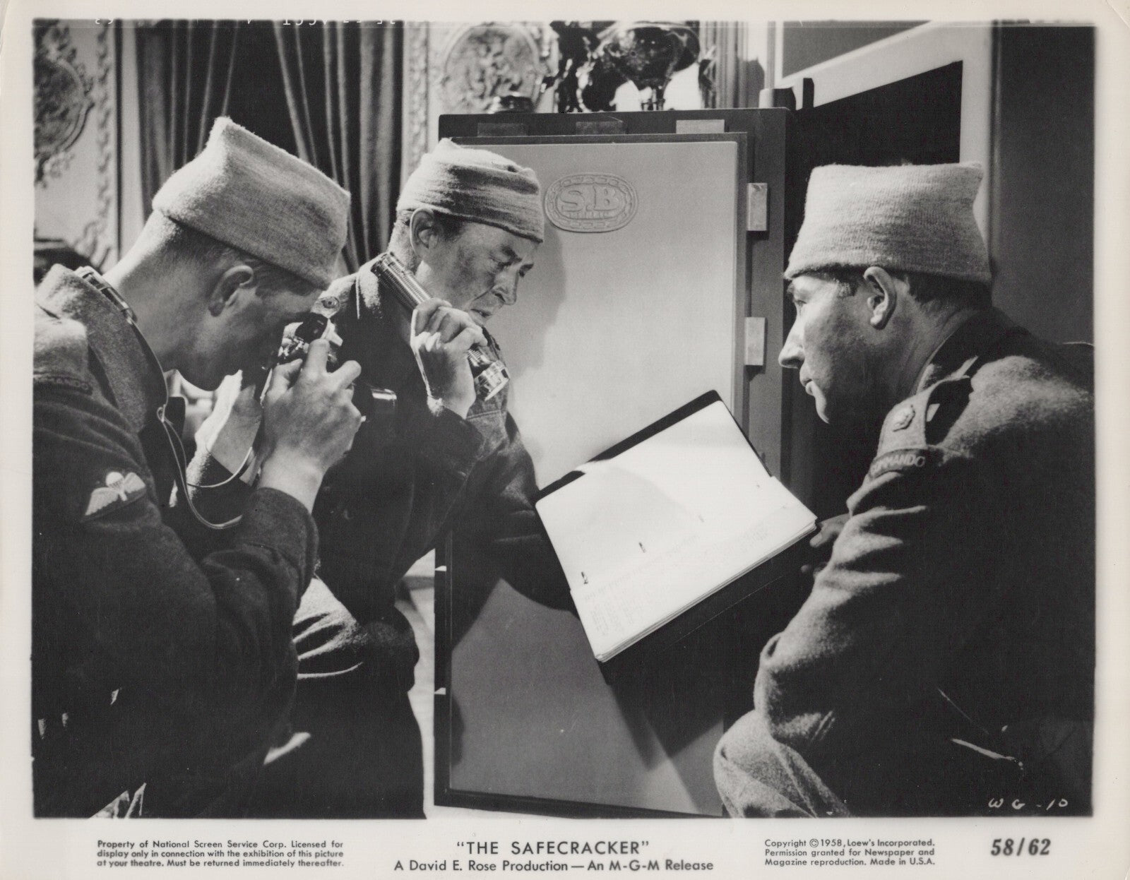 Own a piece of classic Hollywood history with this vintage original photograph featuring the iconic Ray Milland alongside Barry Jones in the thrilling 1958 crime drama The Safecracker. Directed by Ray Milland himself, this film masterfully combines suspense, espionage, and drama, making it a standout of its era.