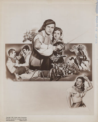 Richard Greene photo, Paula Raymond movie still, Dona Drake still, Bandits of Corsica 1953 photograph, 1950s adventure film still, classic Hollywood photo, vintage film still, 1950s action movie still, rare movie collectible, vintage Hollywood memorabilia.