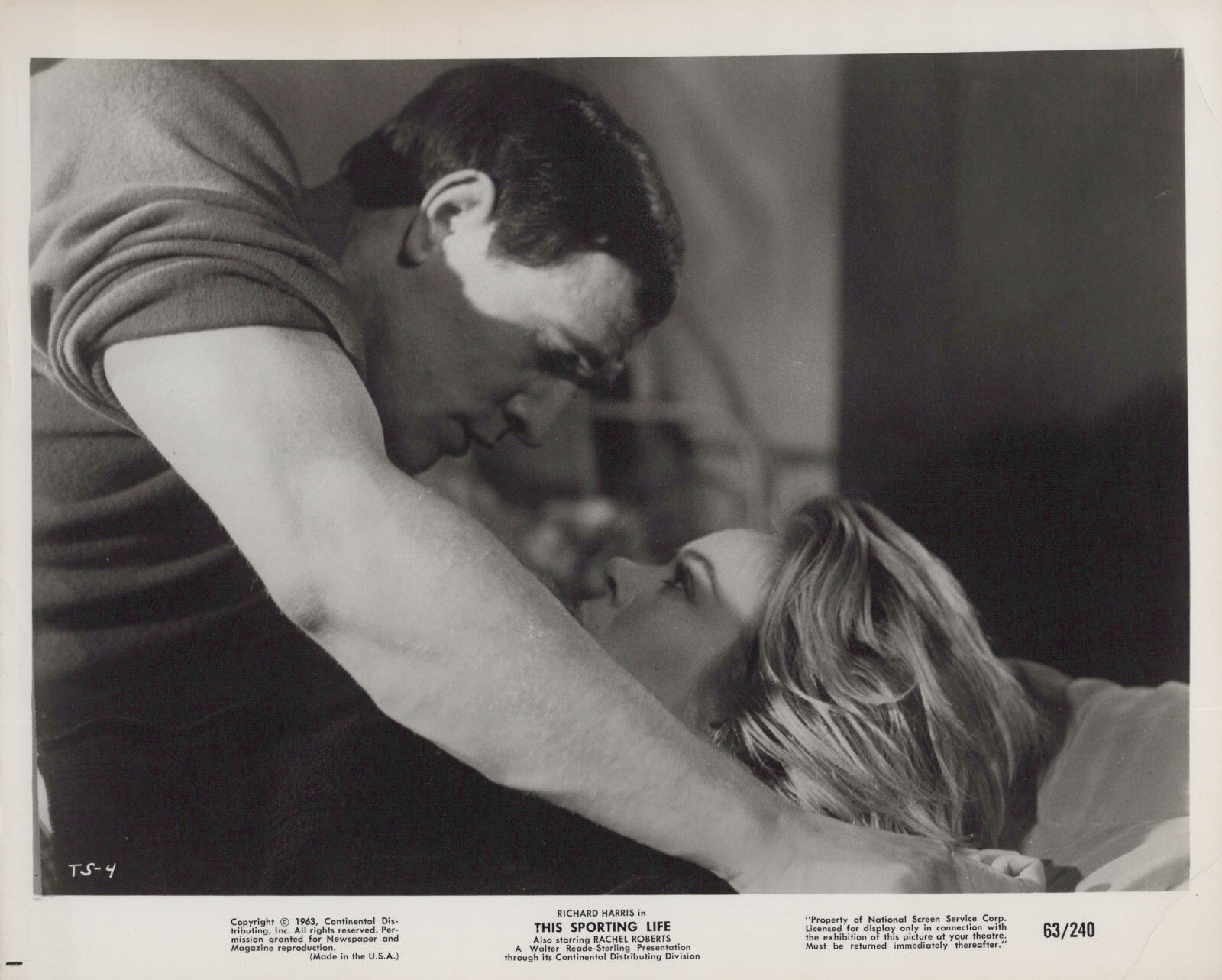 Richard Harris photo, Rachel Roberts collectible, This Sporting Life 1963 memorabilia, British New Wave cinema, vintage film photography, classic drama movie collectibles, rare 1960s British film items, Academy Award-nominated performances, iconic film stills.