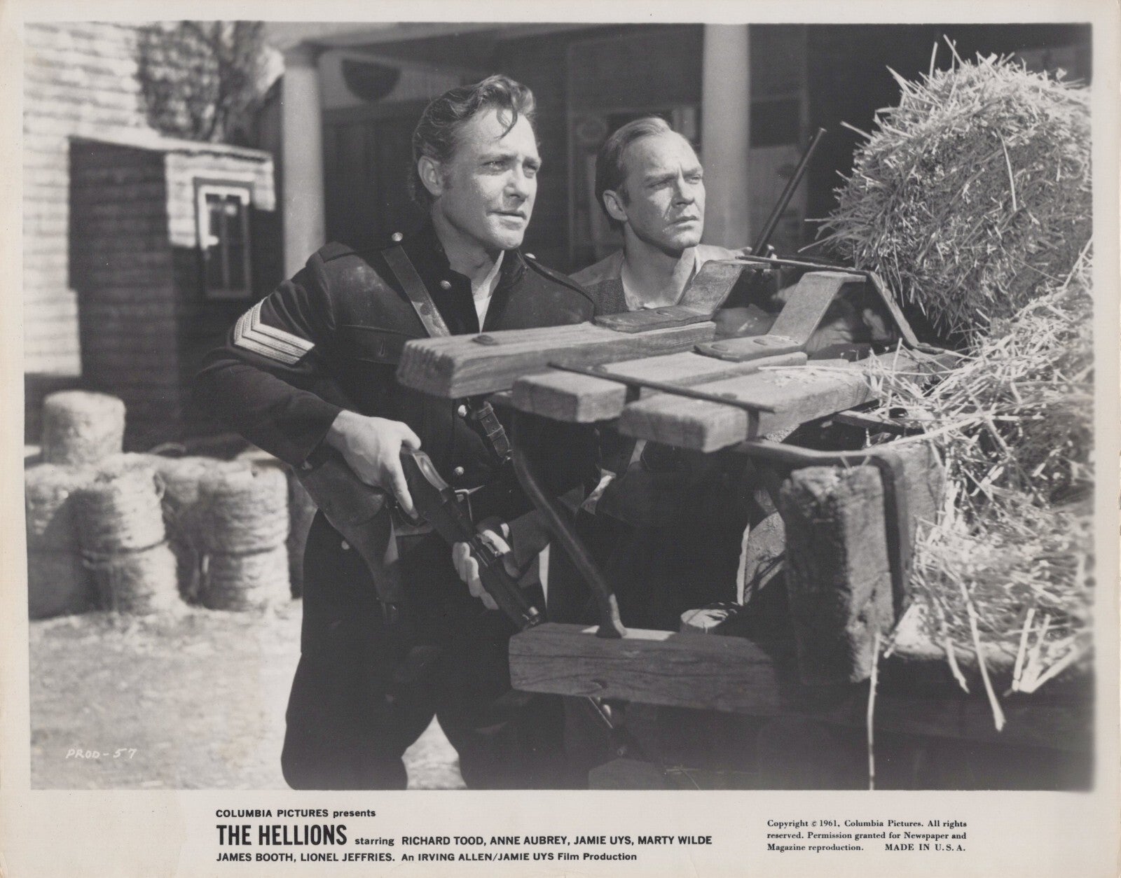 Add this rare photograph of Richard Todd in The Hellions to your collection. A must-have for fans of vintage Westerns, Richard Todd's performances, and classic action movies.