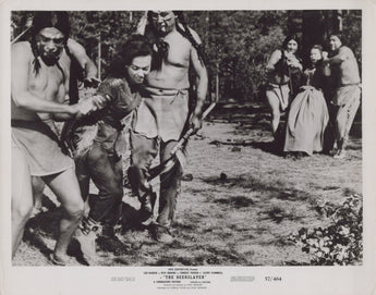 Enhance your collection with this rare and authentic vintage promotional photograph from the classic 1957 adventure film The Deerslayer. This stunning piece of Hollywood history features iconic cast members Rita Moreno, Cathy O'Donnell, Carlos Rivas, and Forrest Tucker in a dynamic scene that captures the spirit of this legendary movie.